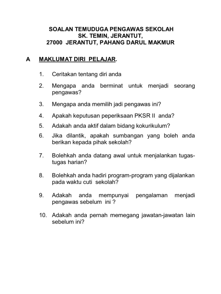 Tips Soalan Temuduga Pengawas Sekolah Pdf
